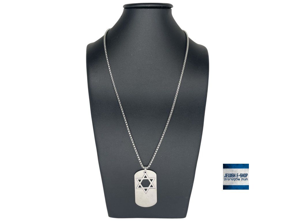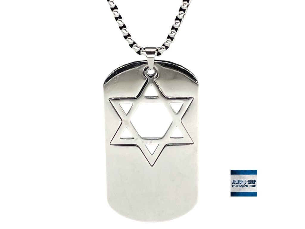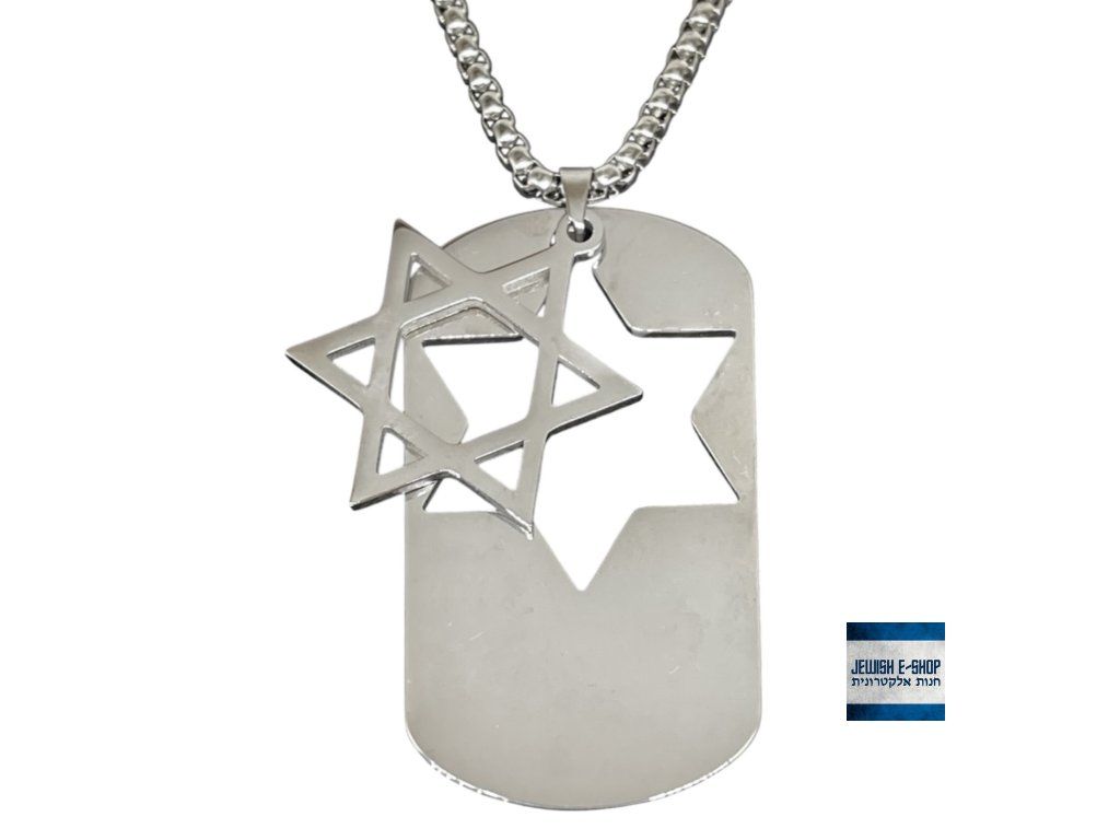 ✡️ Nerezový náhrdelník s přívěškem Davidova hvězda – Dog Tag (Magen David) - stříbrný