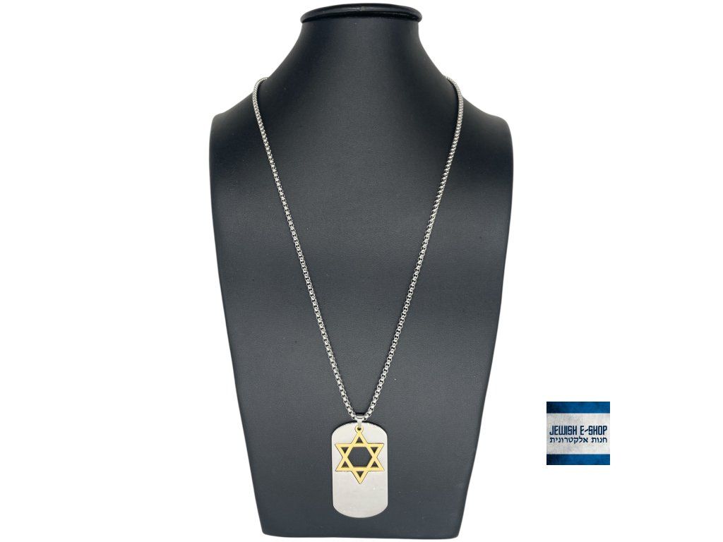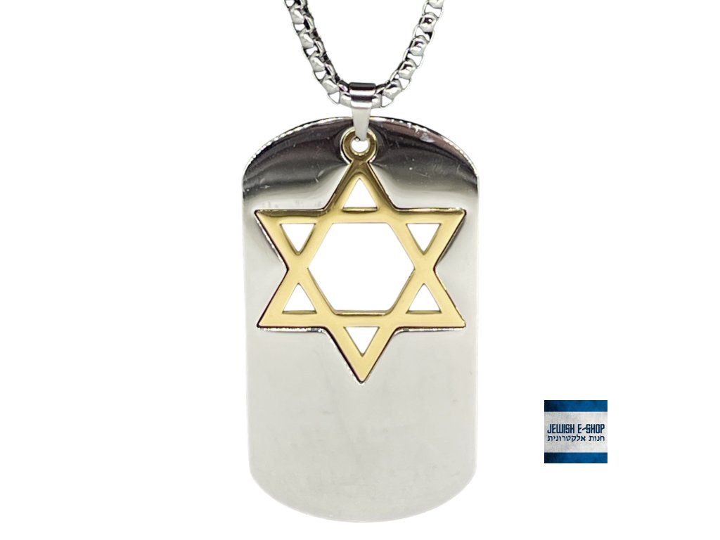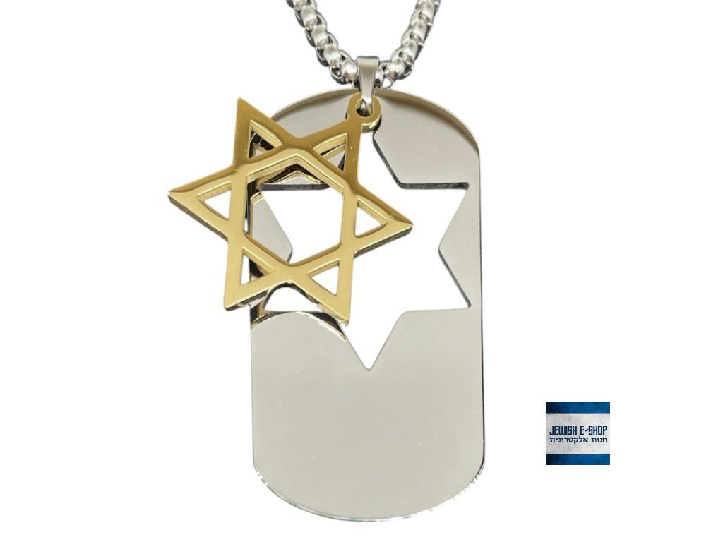✡️ Nerezový náhrdelník s přívěškem Davidova hvězda – Dog Tag (Magen David) - stříbrný se zlatou hvězdou