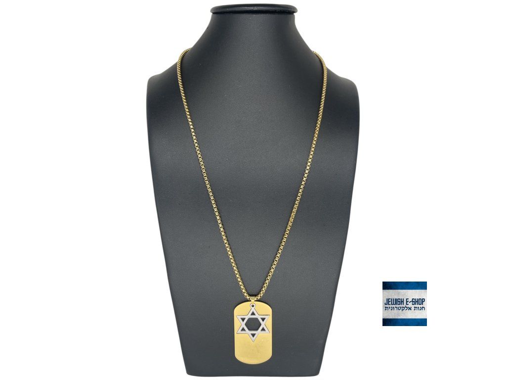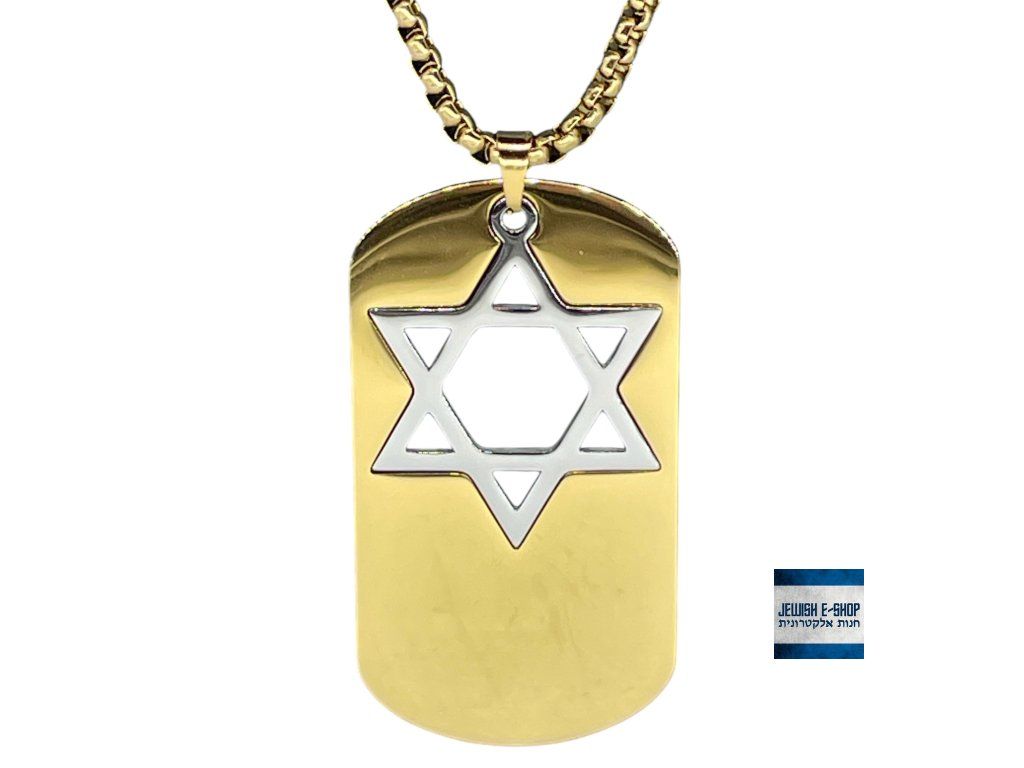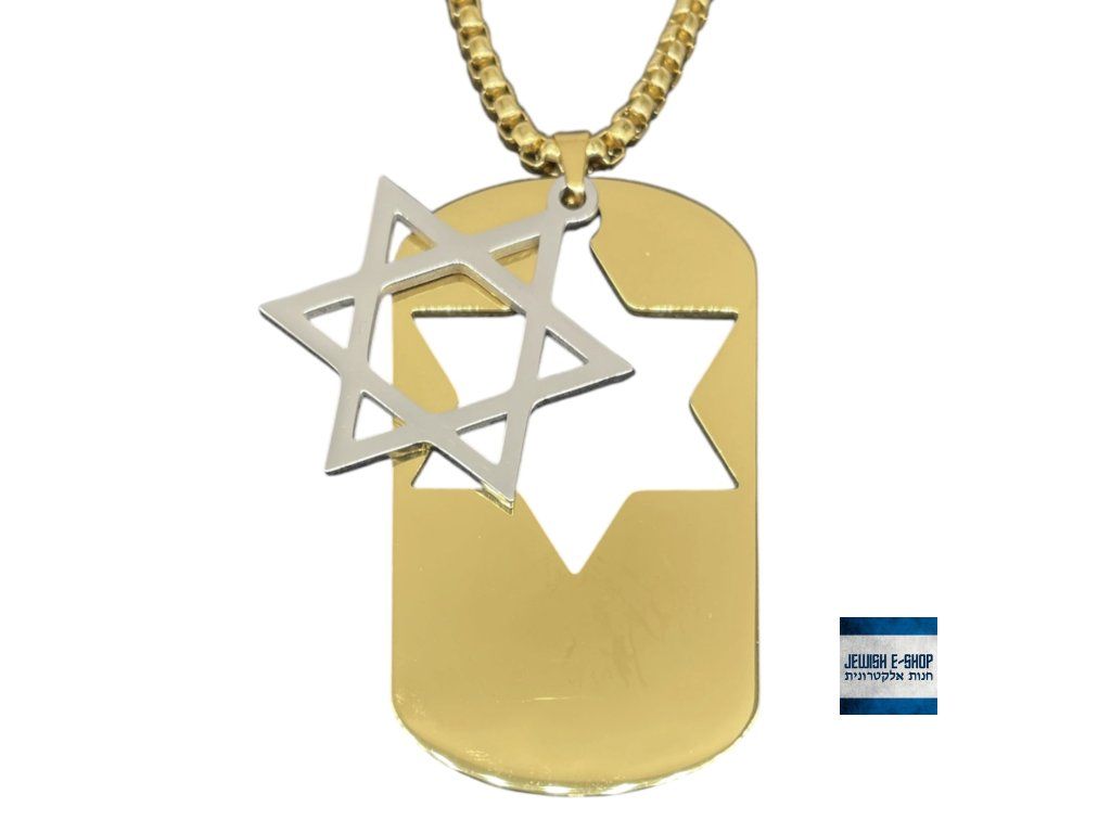 ✡️ Nerezový náhrdelník s přívěškem Davidova hvězda – Dog Tag (Magen David) - zlatý se stříbrnou hvězdou