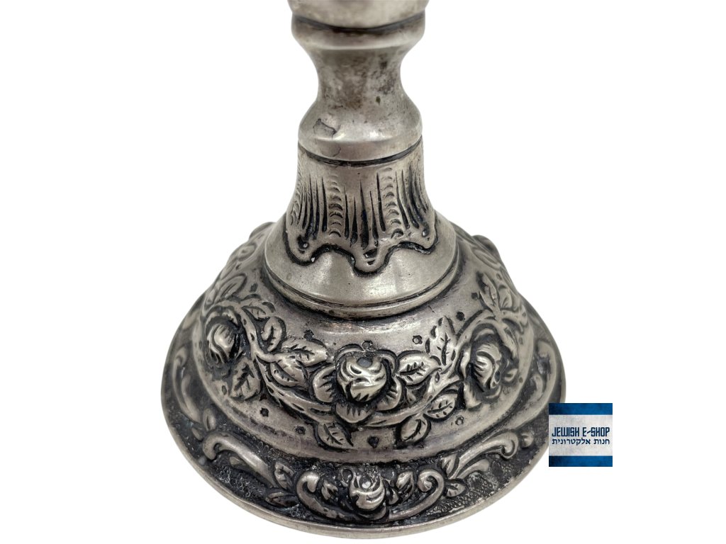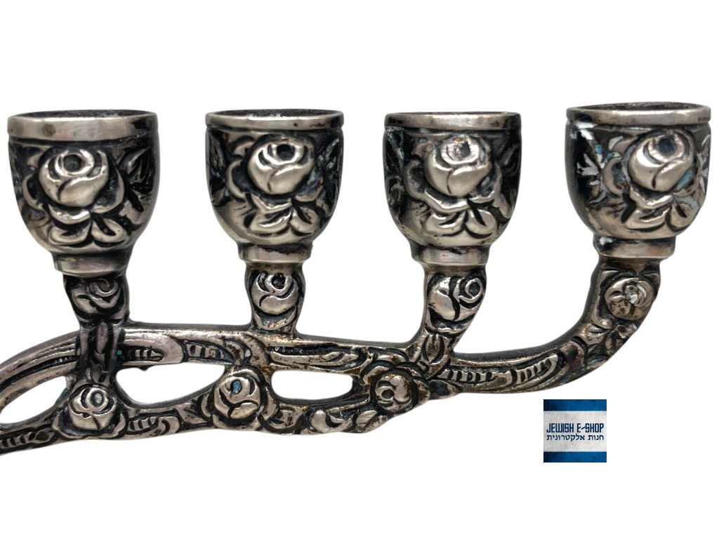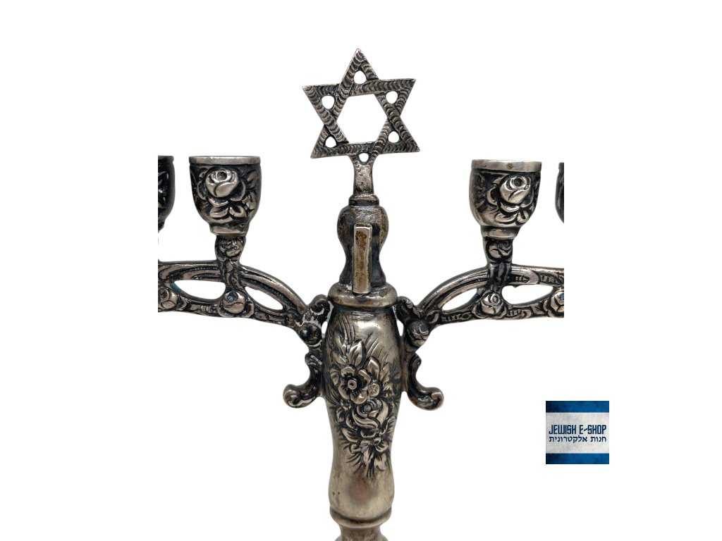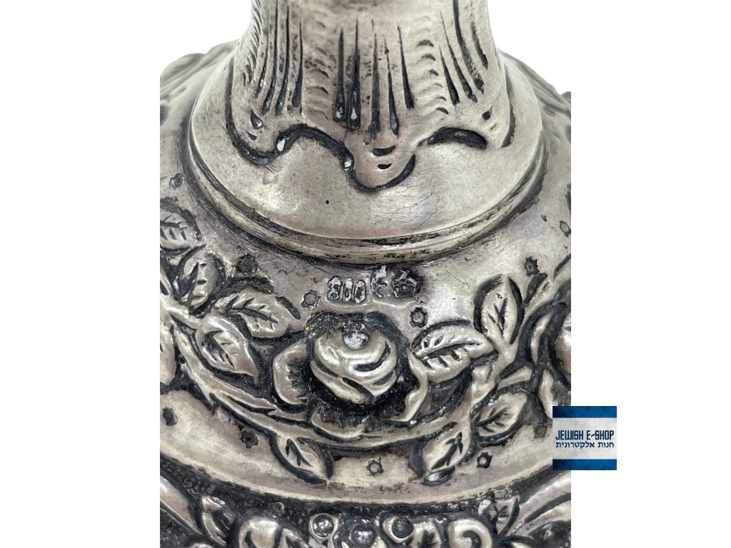 Starožitná stříbrná chanukija s florálním reliéfem ze stříbra 800