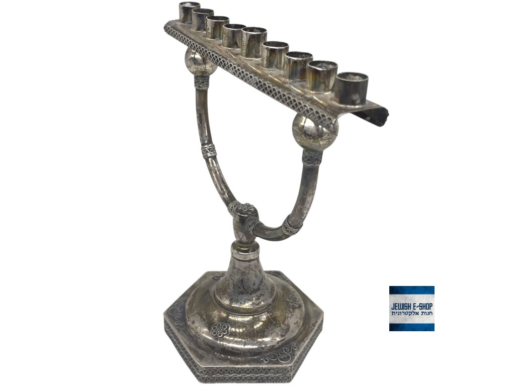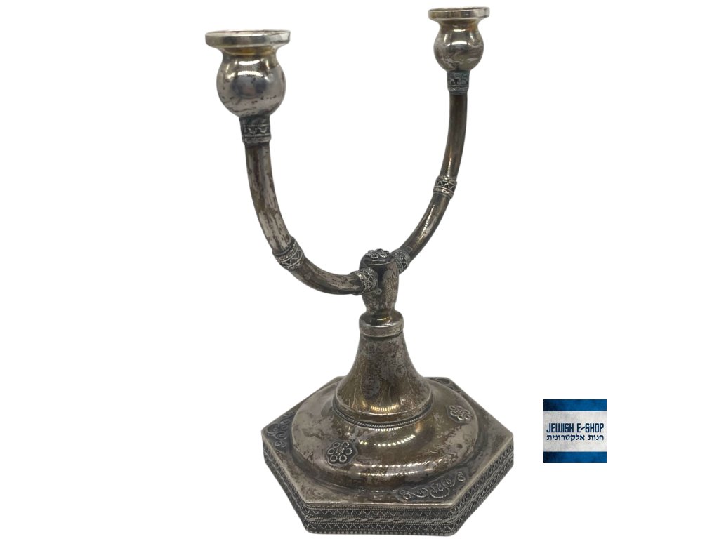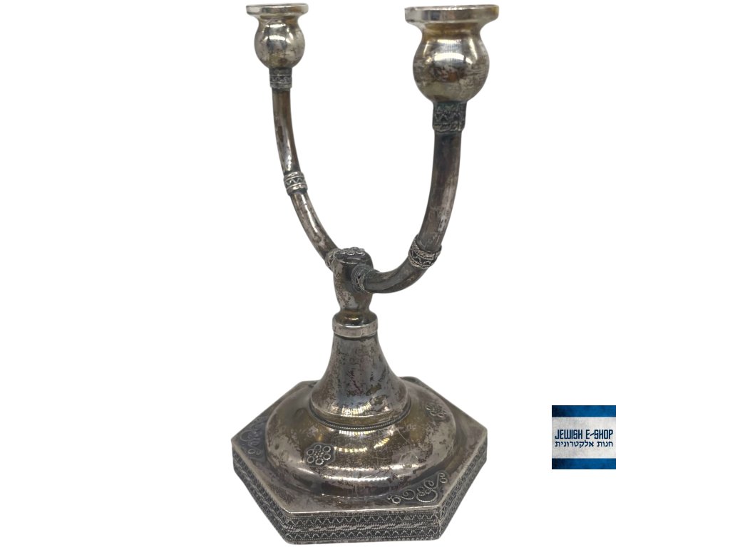 Stříbrná izraelská chanukija kombinovaná se šábesovým svícnem, Ag 925