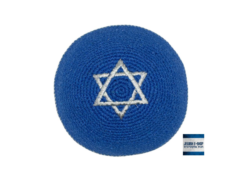 Jarmulka modroostříbrná s Davidovou hvězdou