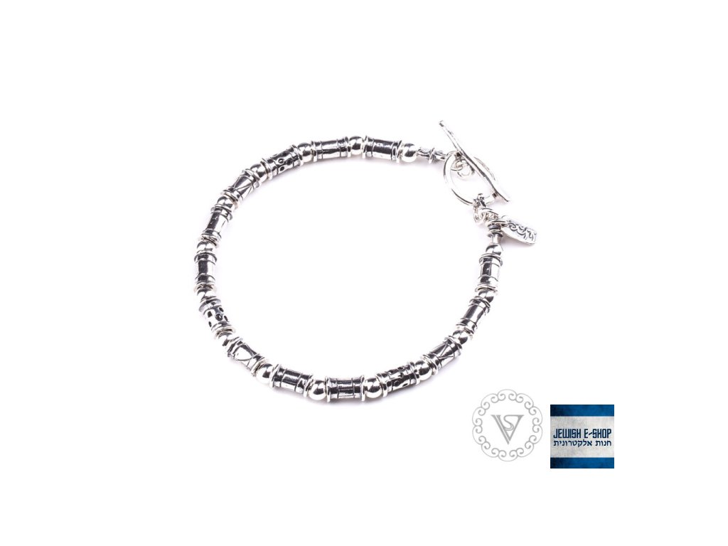 Stříbrný náramek s kuličkami a zdobenými válečky - Ag 925/1000 - Shablool