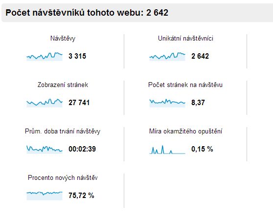 Co se týká čísel, zde je graf za poslední měsíc, za zmínku stojí rozhodně BOUNCE RATE (Míra opuštění), která dosahuje 0,15%:
