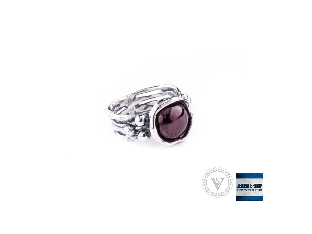 Stříbrný prsten s granátem - Velikost 7 - Ag 925/1000 - Shablool
